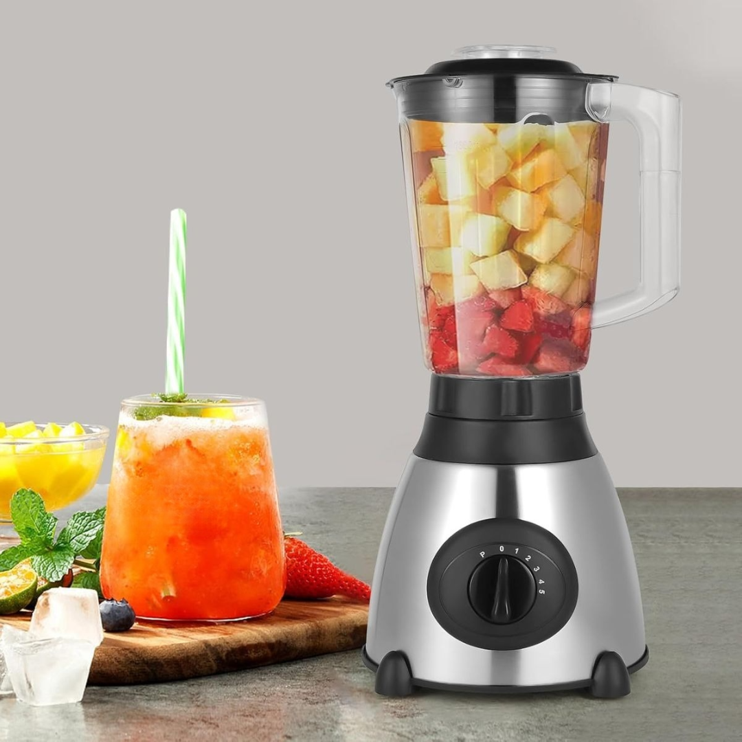 Blenderul electric cu râșniță integrată îți transformă complet experiența culinară. Cu o capacitate generoasă de 1.5L și puterea de 650W, pregătești rapid smoothie-uri cremoase, sucuri naturale, supe calde sau maruntești gheața pentru cocktailuri perfecte.