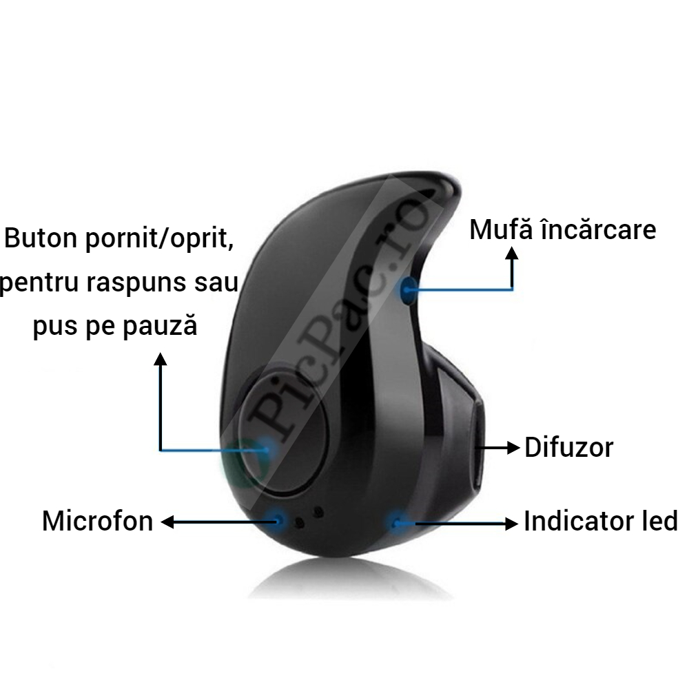 • Design discret: Formă ergonomică de picătură, aproape invizibilă în ureche