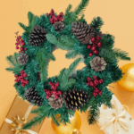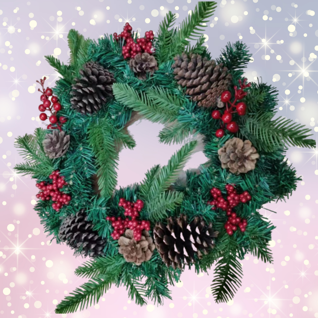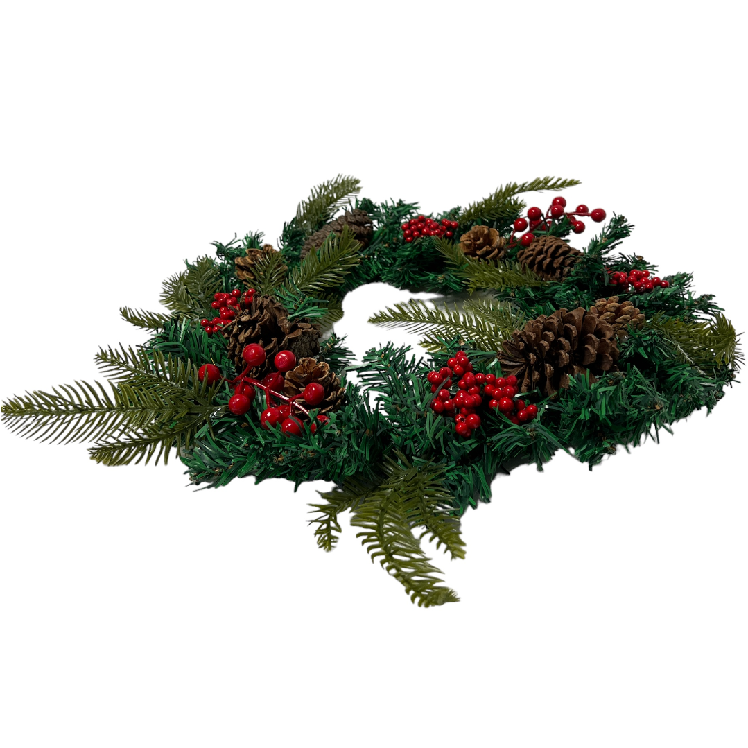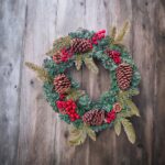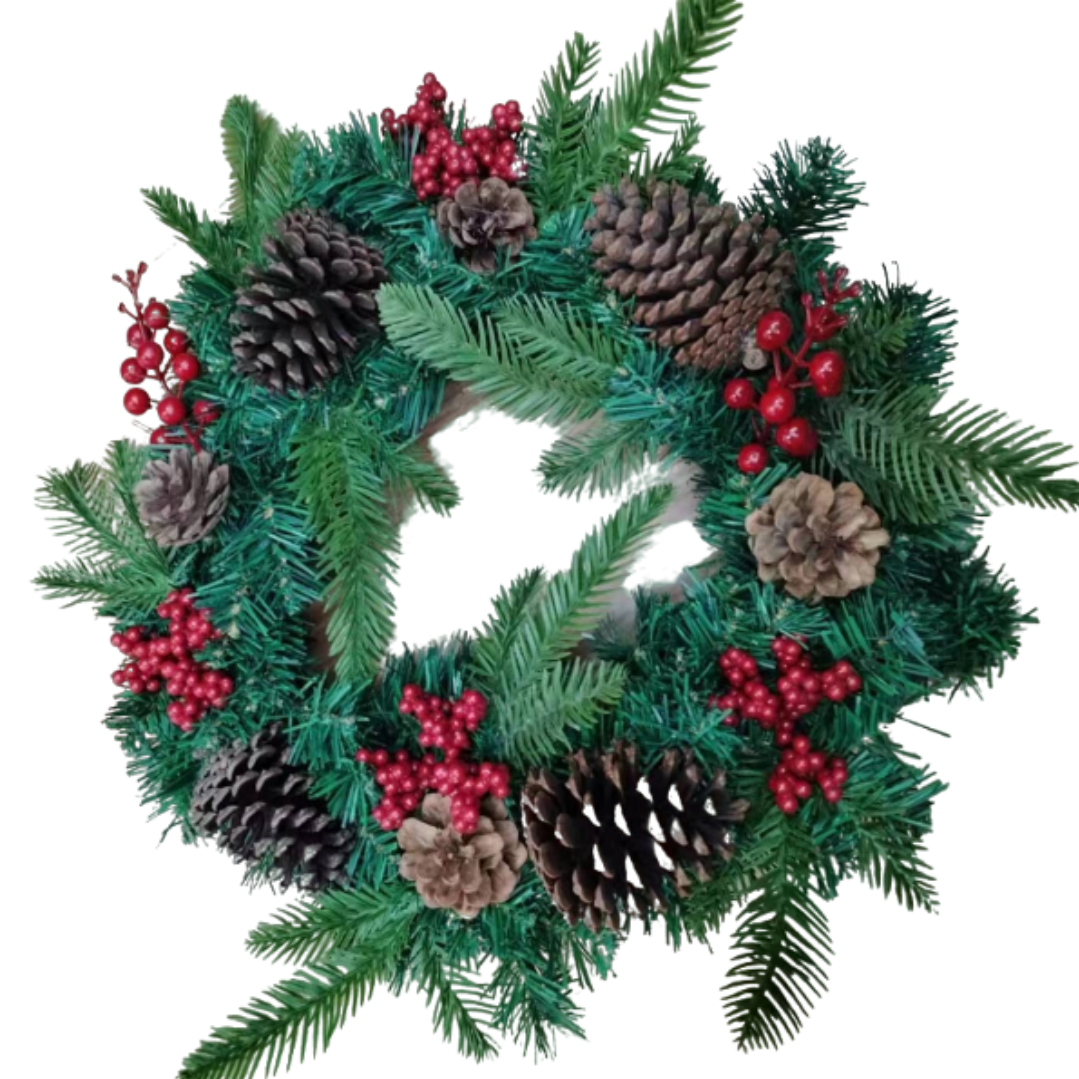 Această ghirlandă de Crăciun prezintă un amestec festiv de ace de pin verzi, ramuri de molid, ramuri de chiparos, crenguțe mari de boabe roșii, ciorchini mici de boabe roșii și conuri de pin naturale, pline de culori de sărbători și farmec de Crăciun!