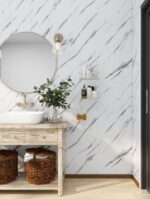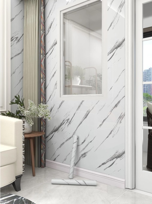 Transformă-ți spațiul cu ajutorul acestei folii autoadezive pentru perete, care imită cu succes aspectul elegant al marmurei albe. Cu dimensiuni de 0.6 x 3 m, aceasta este perfectă pentru a adăuga un aer sofisticat în orice cameră, de la baie și bucătărie, până la livinguri și holuri.