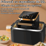 ⚡ Gătește sănătos și rapid cu friteuza digitală cu aer cald 3în1 – capacitate mare 12L pentru întreaga familie!