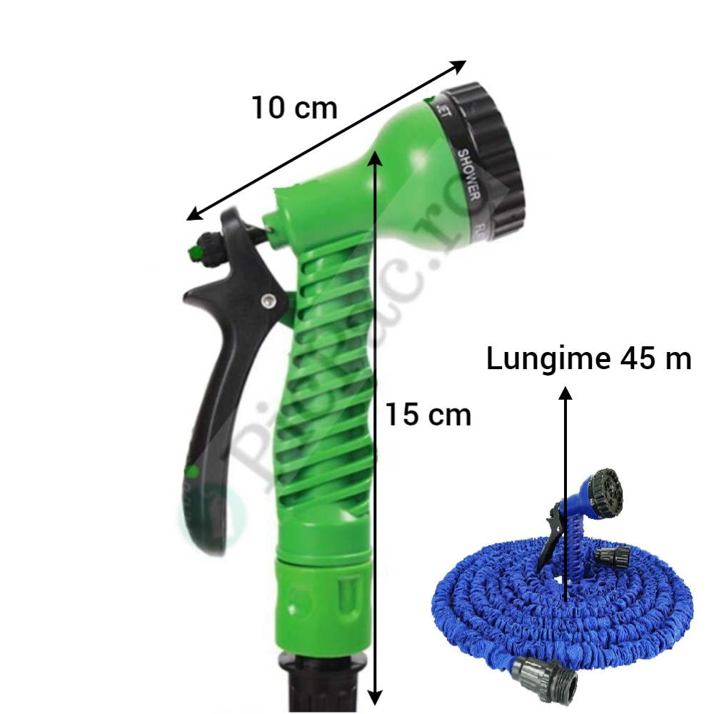 Furtun Extensibil Premium 45m cu Pistol Stropit – Elastic si Ultrausor pentru Gradina