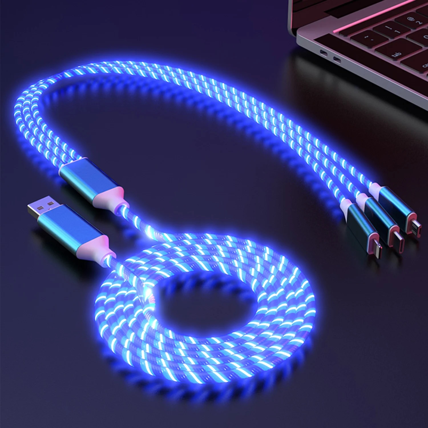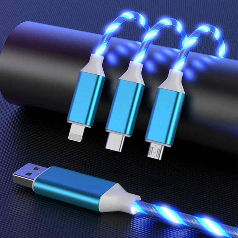 Cablul nostru de încărcare 3 în 1 cu efect LED nu este doar un simplu accesoriu, ci o combinație perfectă între funcționalitate și design inovator.