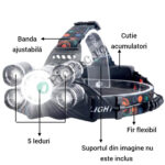 ⚡ Lanterna frontală de înaltă performanță cu 5 LED-uri puternice CREE, perfectă pentru aventurierii care nu fac compromisuri în privința calității luminii!