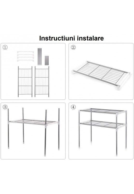 Acest suport telescopic cu 2 rafturi reprezintă alegerea ideală pentru cei care doresc să optimizeze spațiul de depozitare într-un mod modern și elegant. Designul său versatil se adaptează perfect oricărui stil de amenajare, de la clasic la contemporary.