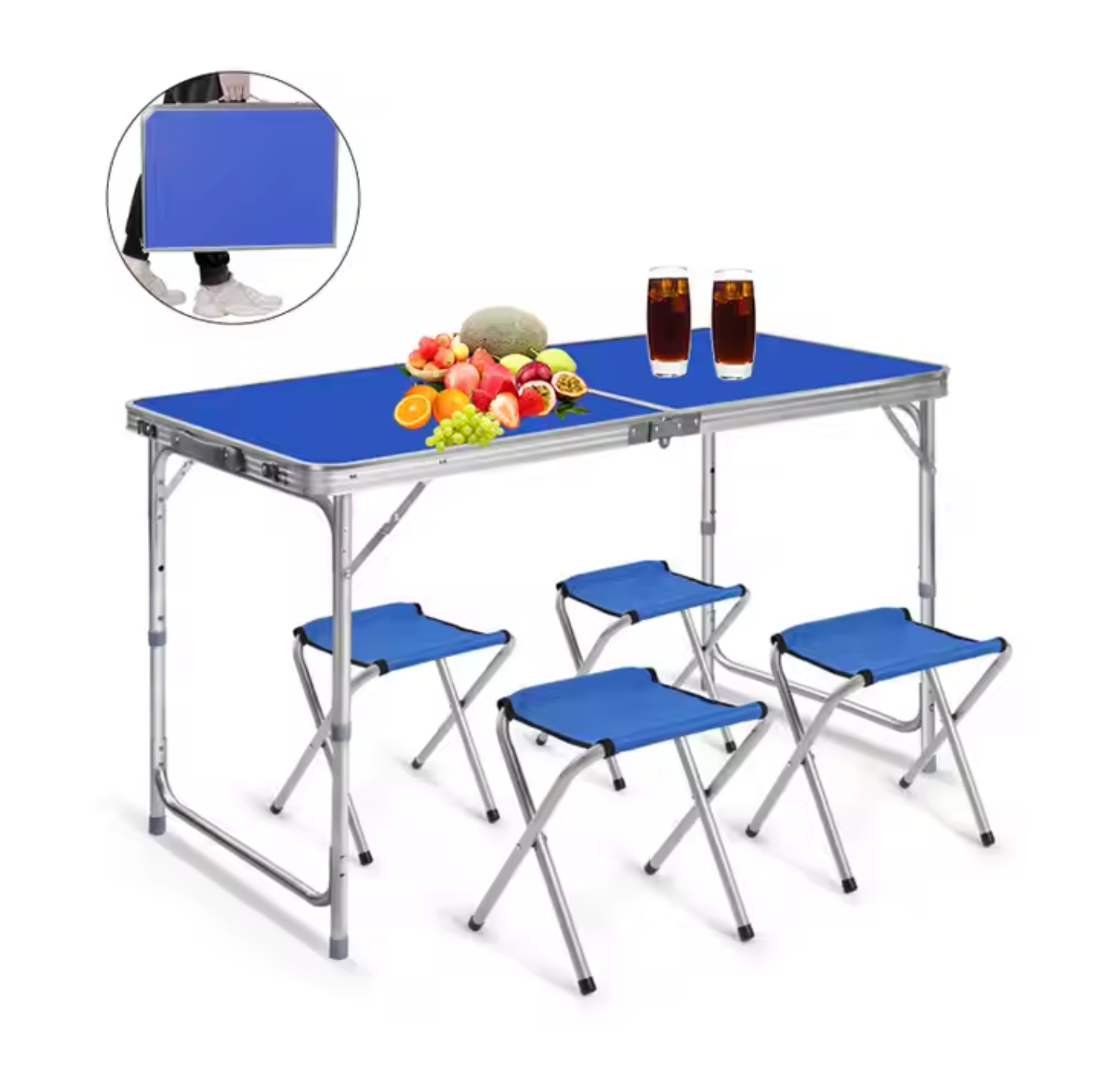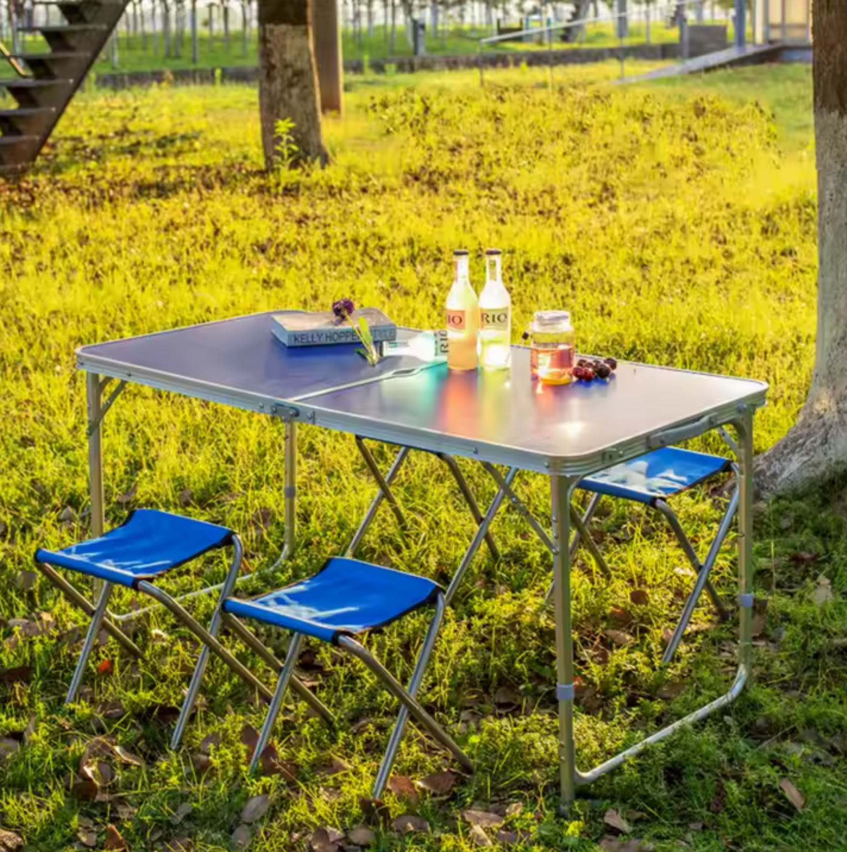 • 4 scaune incluse: Setul complet pentru 4 persoane, ideal pentru a te bucura de un picnic, o masă în natură sau o pauză într-o drumeție.