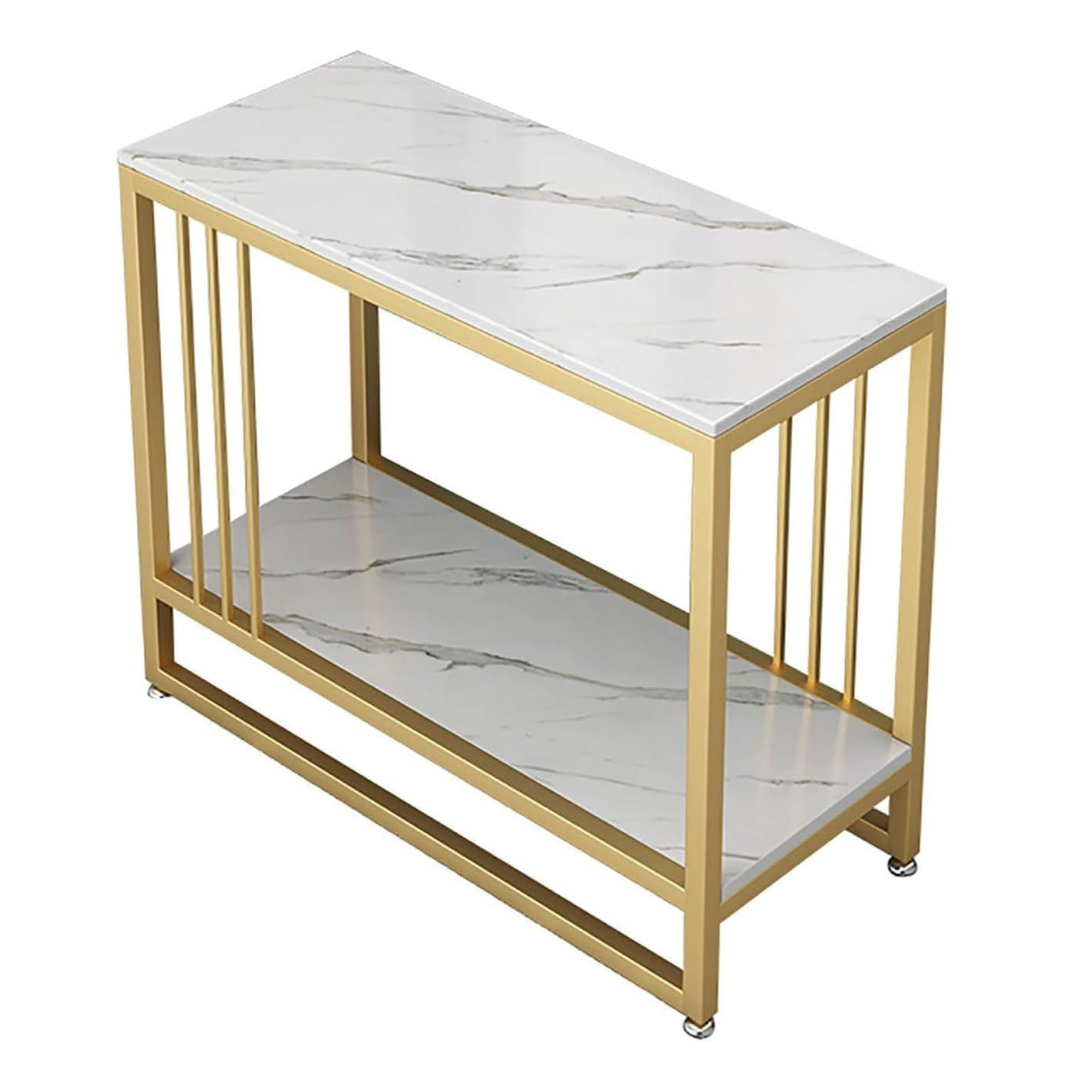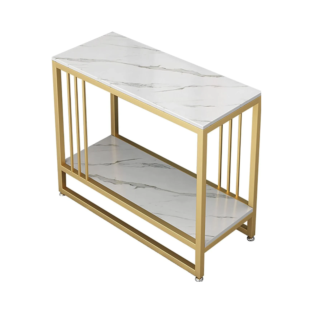 Masuta decorativa dreptunghiulara, laterala, efect marmura, 2 spatii de depozitare