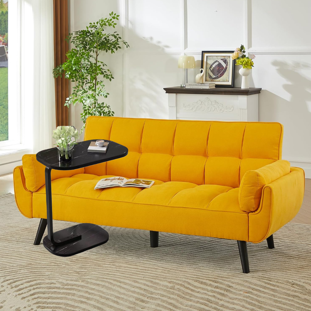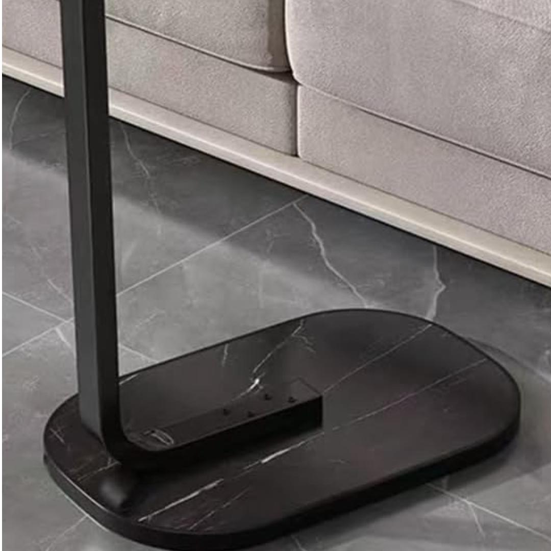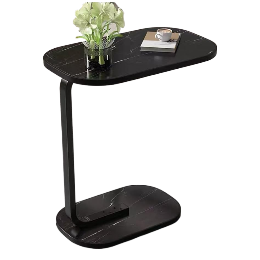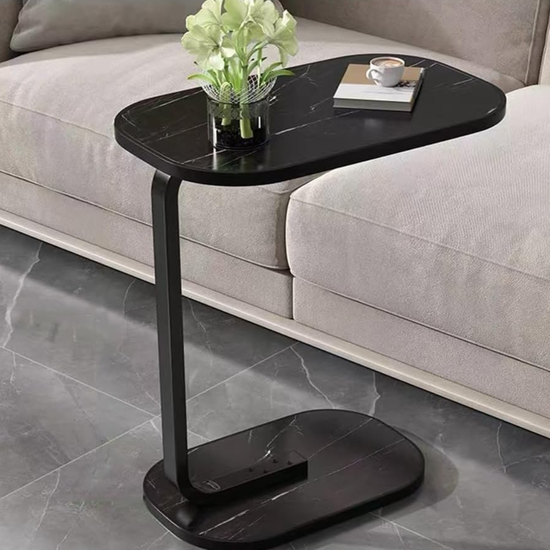 Transformă-ți livingul cu această măsuță laterală ovală cu finisaj sofisticat de marmură neagră!