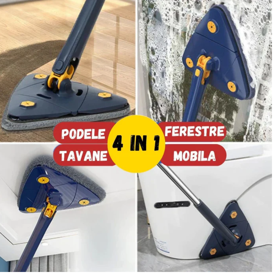 Mop cu cap triunghiular, reglabil, rotire 360 grade + 2 rezerve