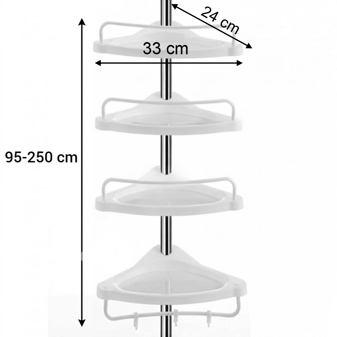 - ✓ Spațiu generos – 4 rafturi de 33×24 cm pentru șampoane, geluri, cosmetice și accesorii