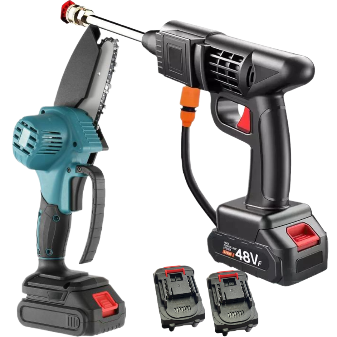 Pachet Mini Drujba Electrica Portabila 24V, 6 Inch + Aparat de Spalat cu Presiune Portabil 30 Bar cu 2 Acumulatori 48V Multifunctional