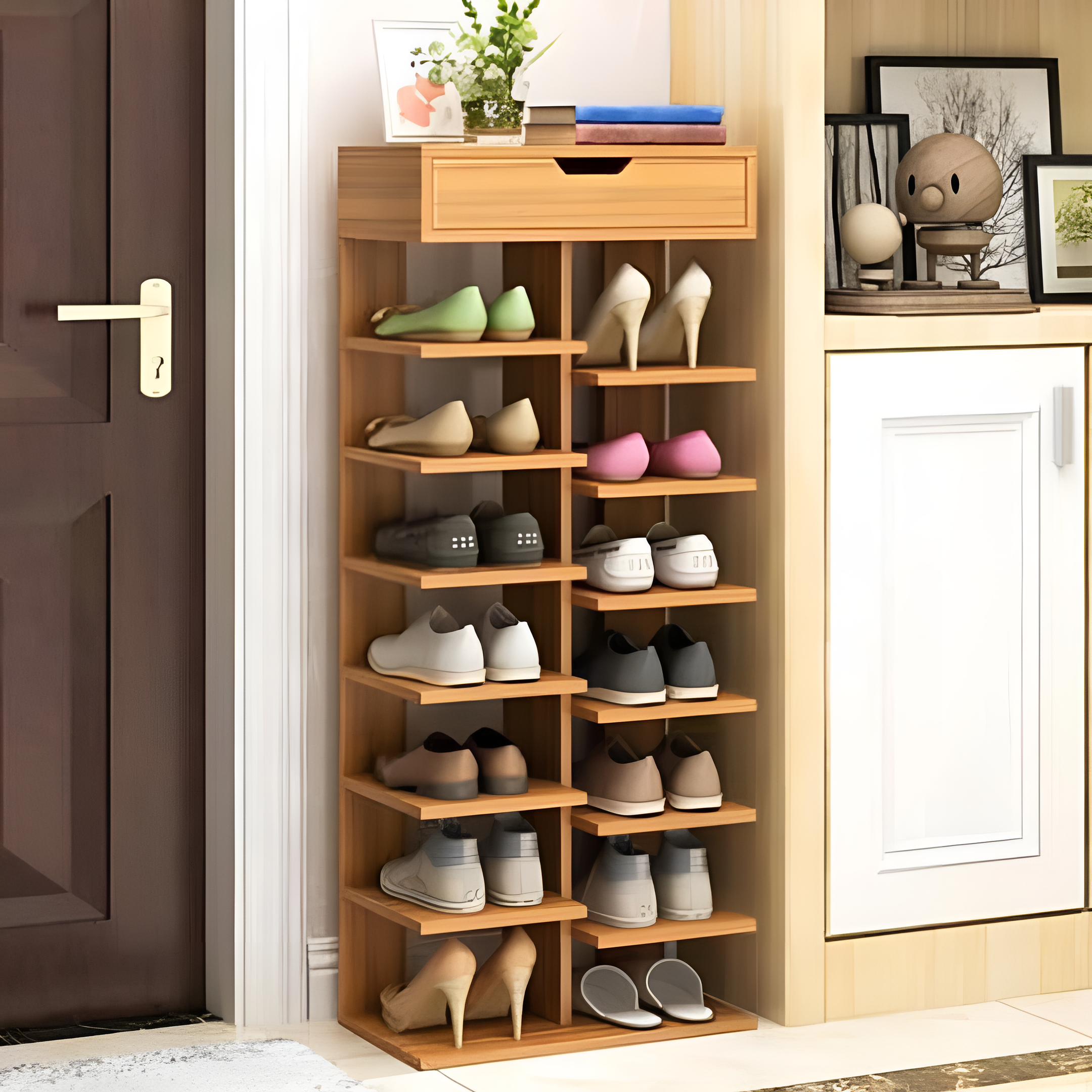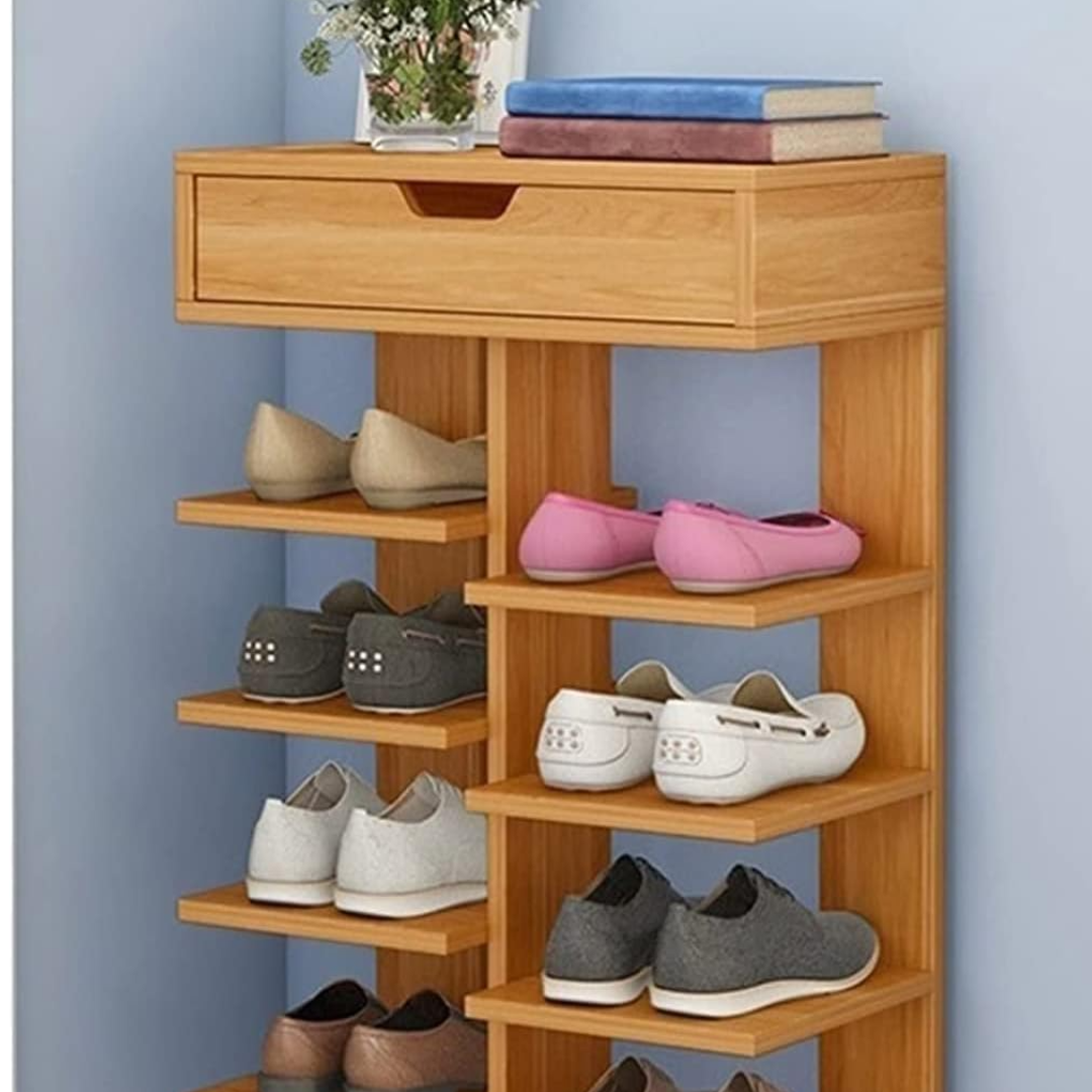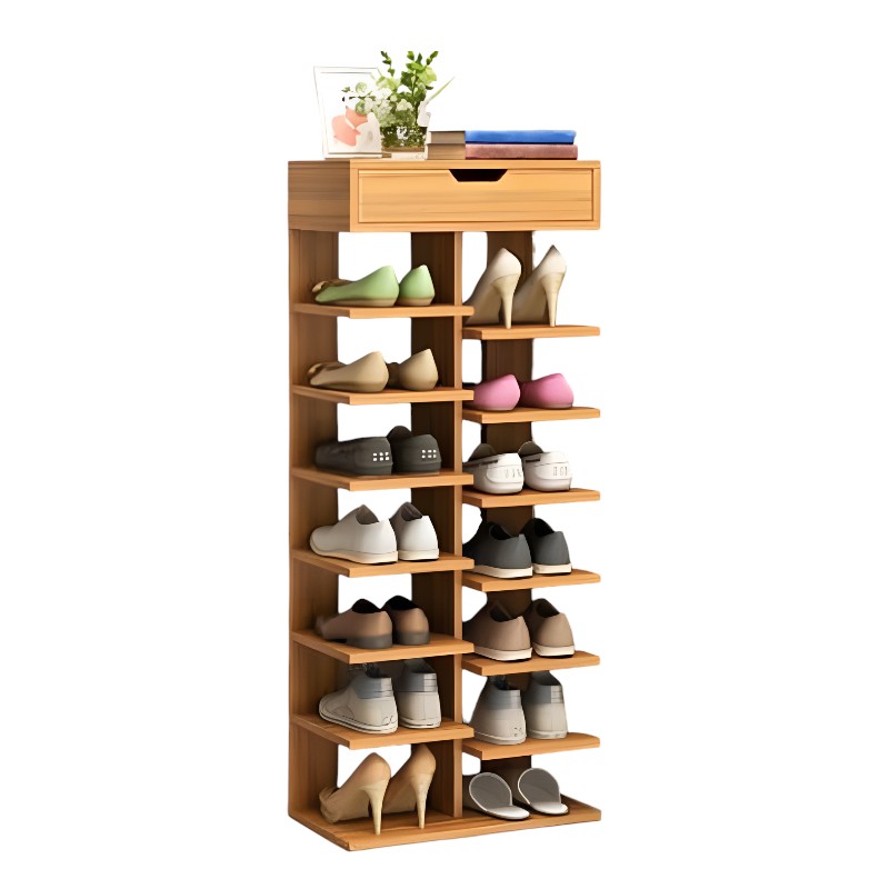 Pantofar cu 7 Etaje din Lemn Deschis – Suport Elegant pentru Pantofi cu Design Spatios