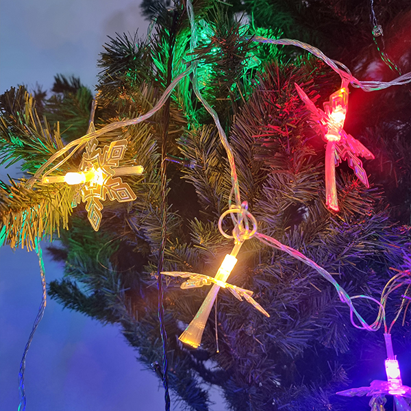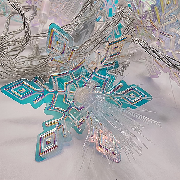 Instalațiile multicolore cu model de fulgi de zăpadă sunt adesea utilizate pentru a crea o atmosferă festivă, în special în perioada sărbătorilor de iarnă.