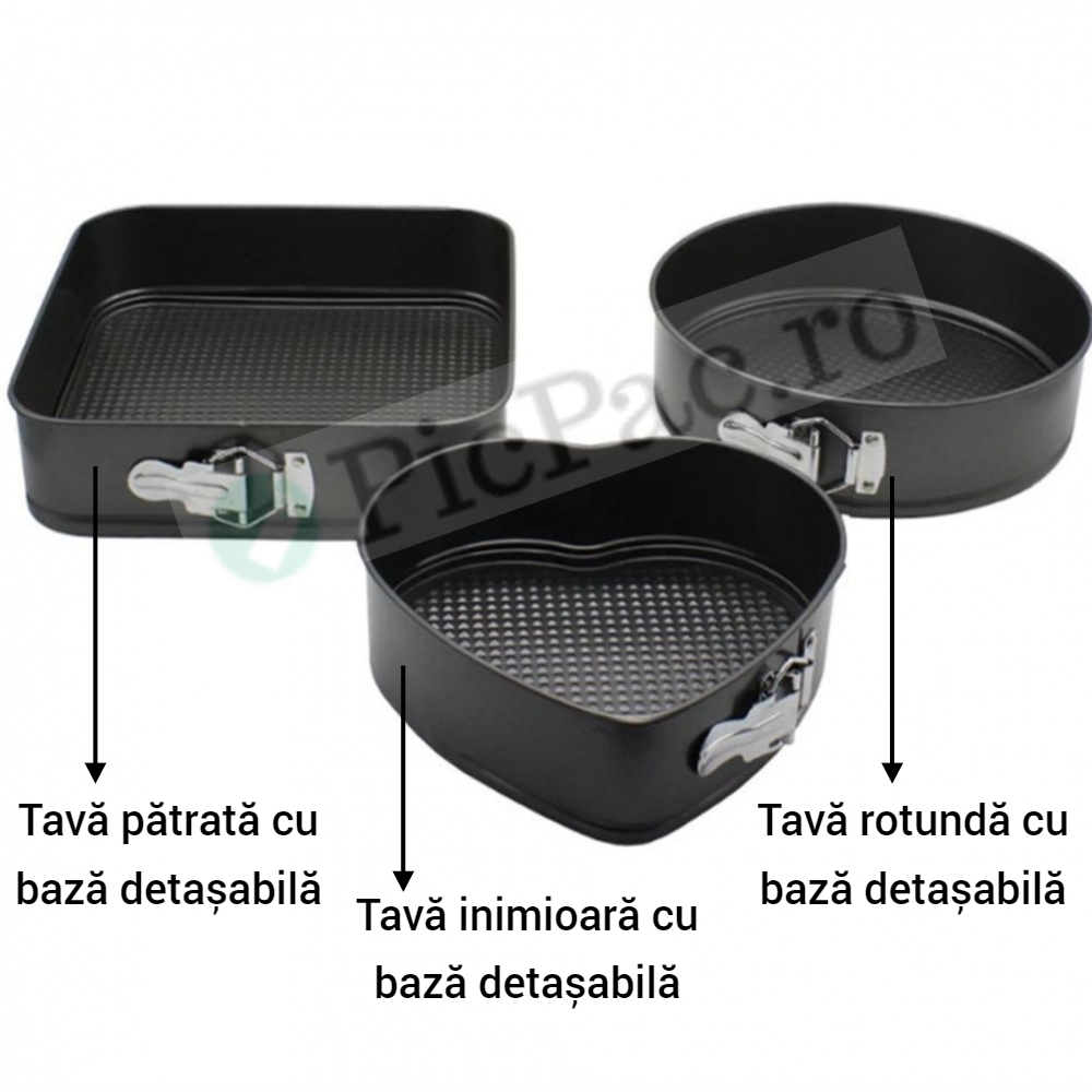 ★ Transformă-ți bucătăria într-un atelier de cofetărie profesională cu acest set premium de 3 tăvi pentru prăjituri cu bază detașabilă și forme diferite!
